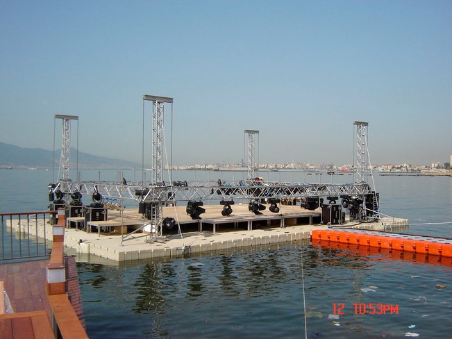 Soporte flotante para eventos o reuniones al aire libre.